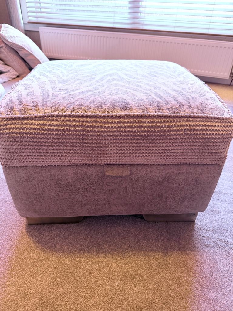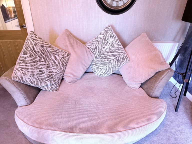 3 seater sofa, cuddle chair and ottoman. 3 years old. Smoke free home. Will be cleaned before sale also.