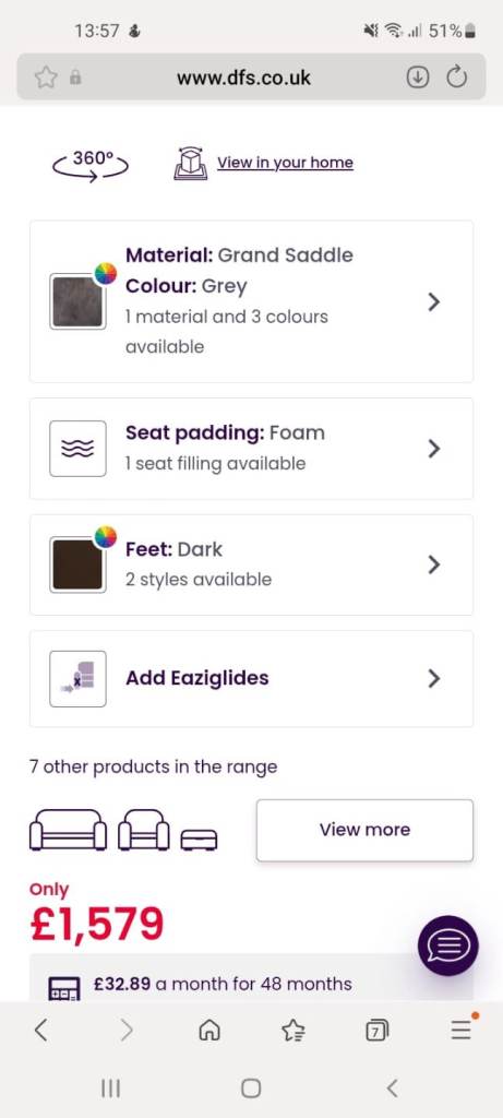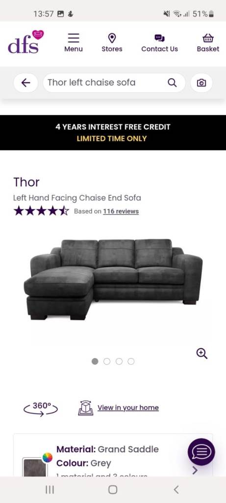 Dfs Thor left hand sofa, used but still in good condition partially resown on middle cushion leather care kit included. Pet and smoke free home