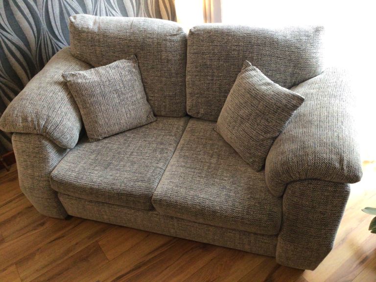 Fairly New.Double Sofas set of 2..Really comfortable Colour is Shaded Gray s you seen in the s photos with matching cushions to match can be turned so looks the same as the Sofa..Very Good if your tight for space in your living room.Look big and chunky but actually they are not that Big..Thanks for looking if need any more info feel free to contact me..Looking for £200 each..o.n.o