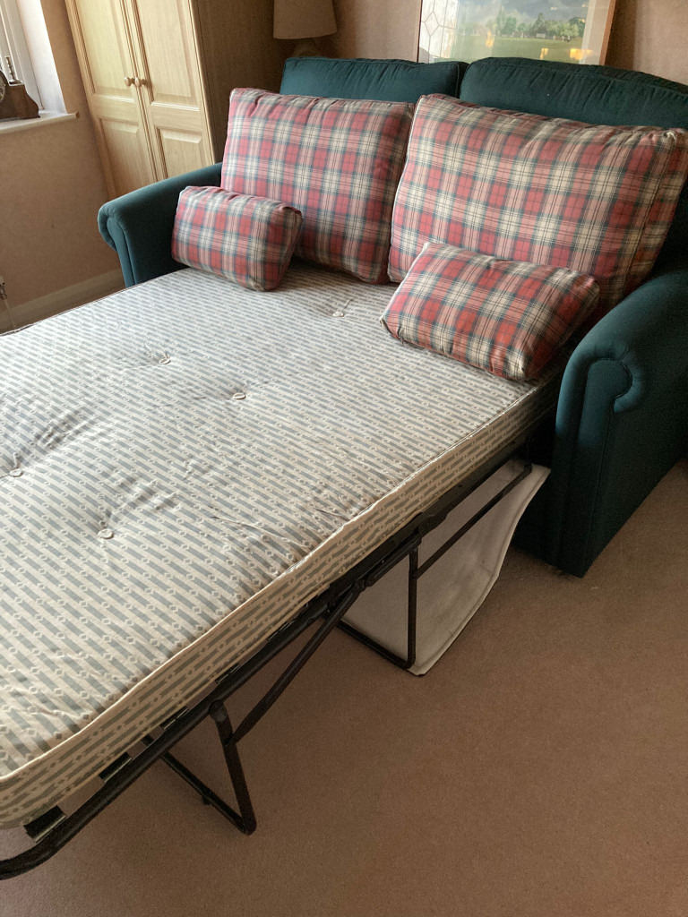 Double Seater Sofa Bed 6ft x 4ft Forest Green with Check Cushions
