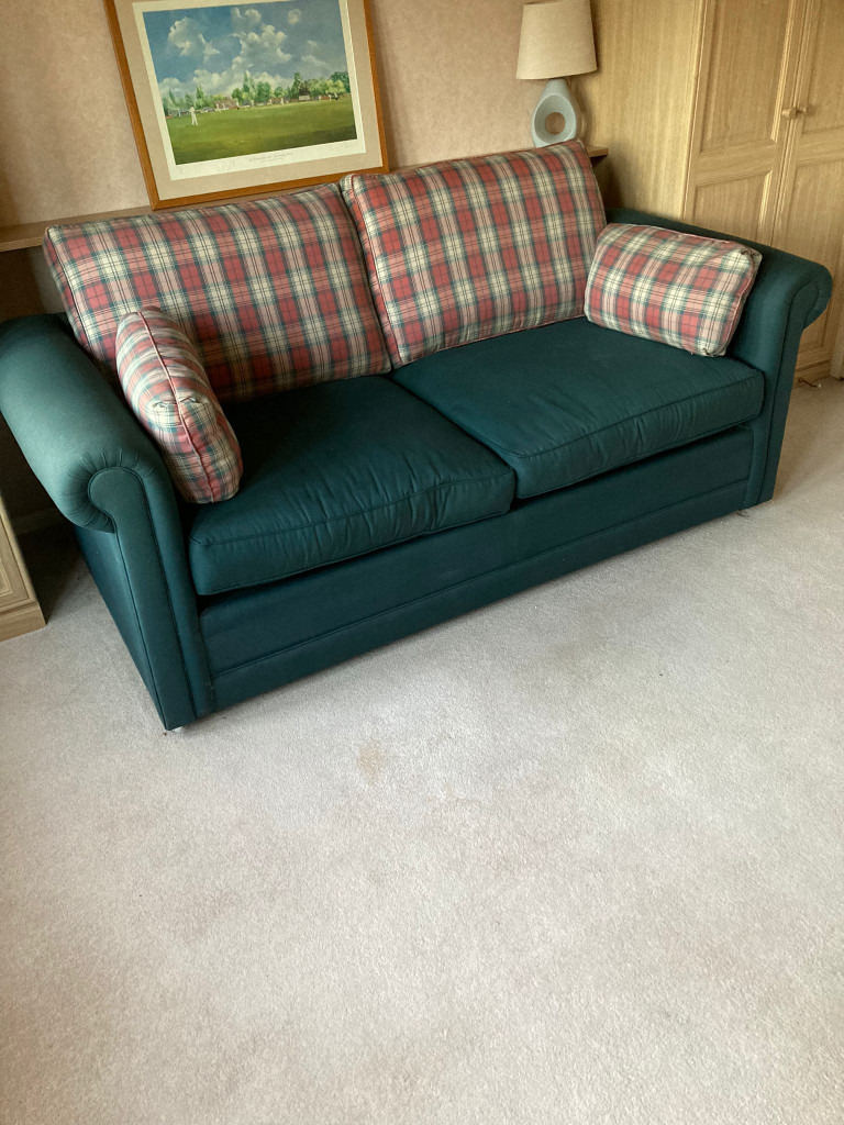 Double Seater Sofa Bed 6ft x 4ft Forest Green with Check Cushions - GREAT PRICE
