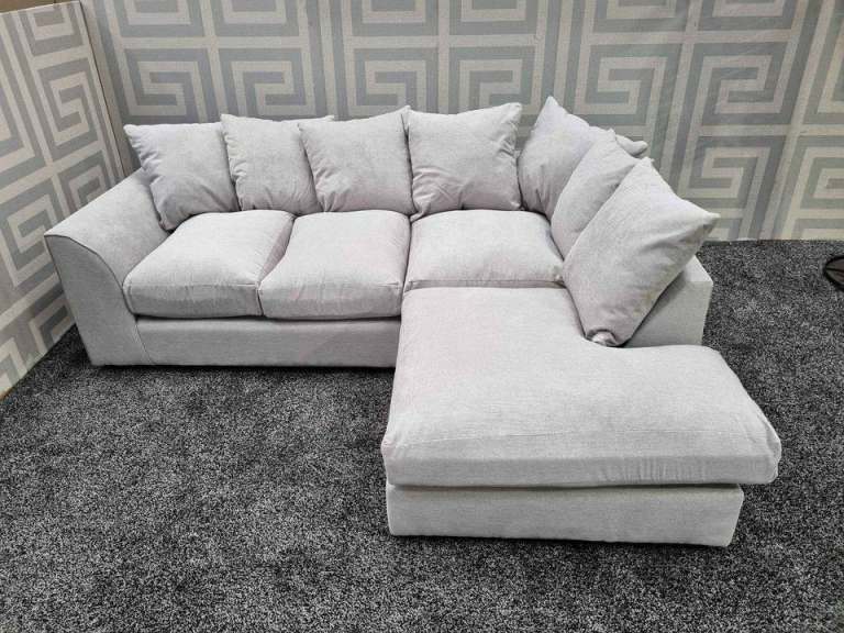Dylan Cream Plush Velvet Corner And 3+2 Seater Sofa unit Delivery Option available