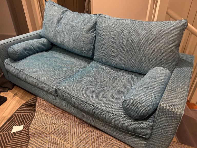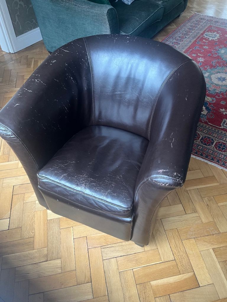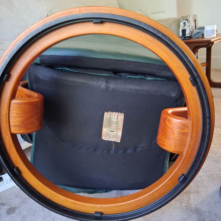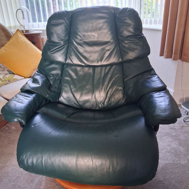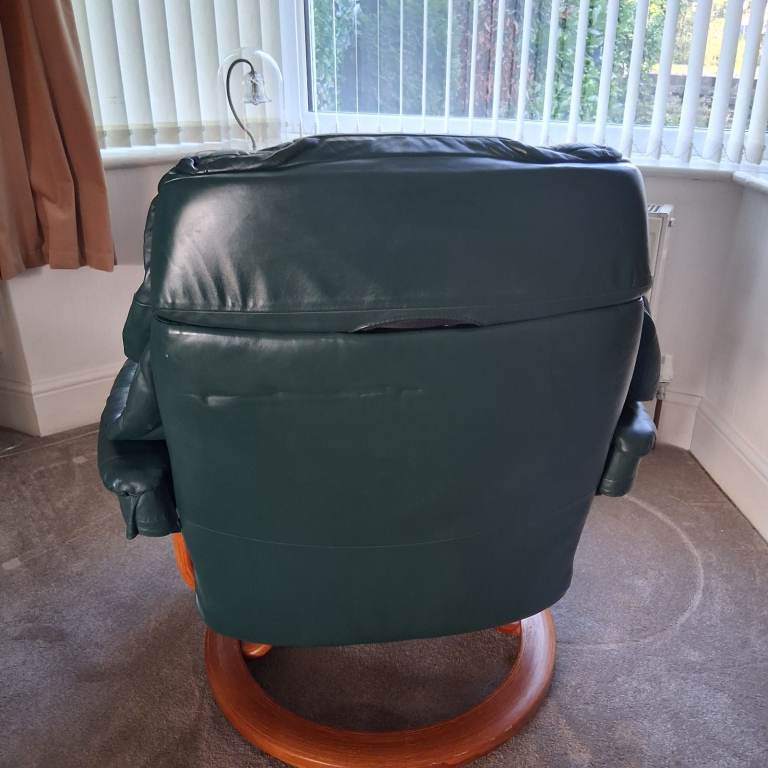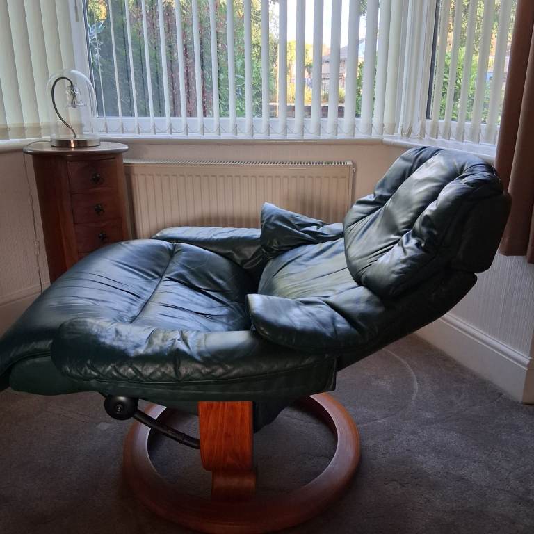 Large ekornes reno in aqua green leather in very good condition. Reclines and swivels with the classic base in light wood. Cash on collection please.