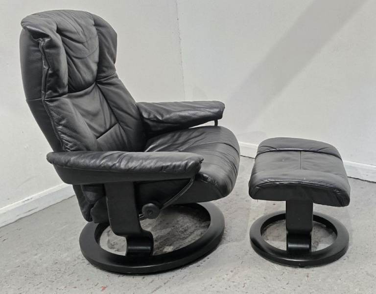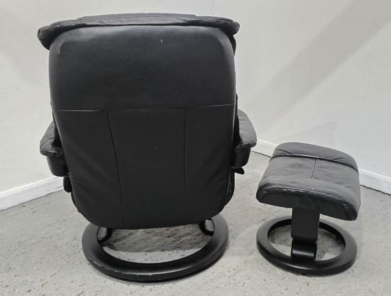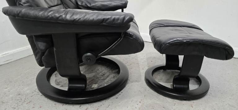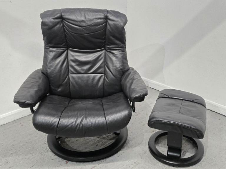 Ekornes Stressless Mayfair Leather Recliner Chair and Footstool Black