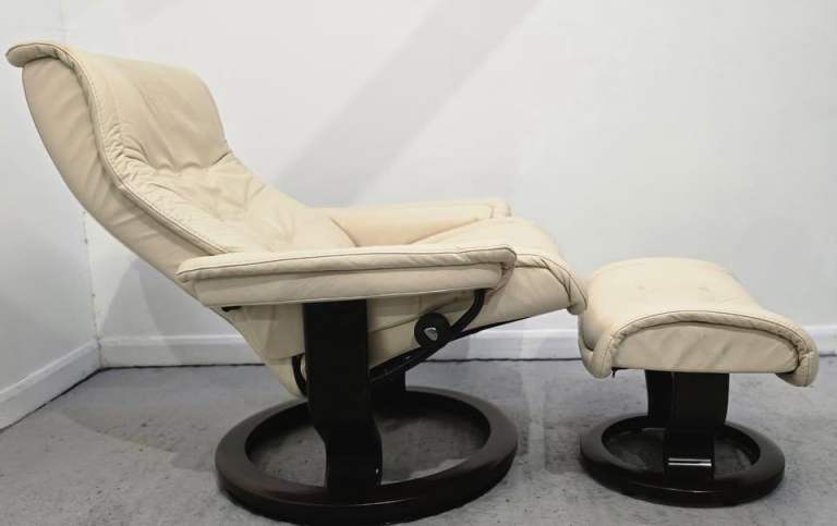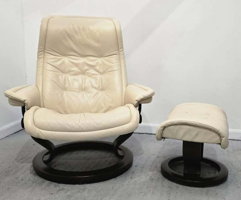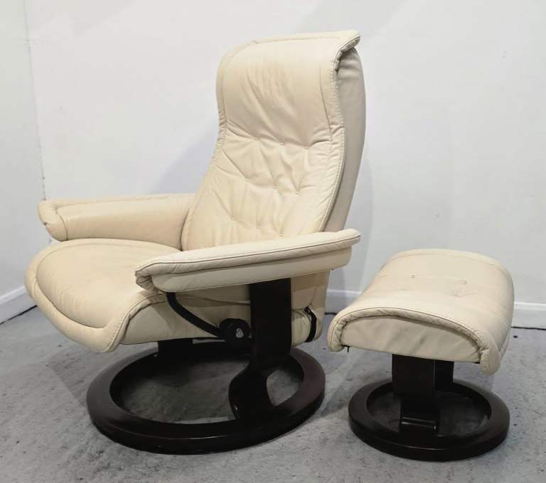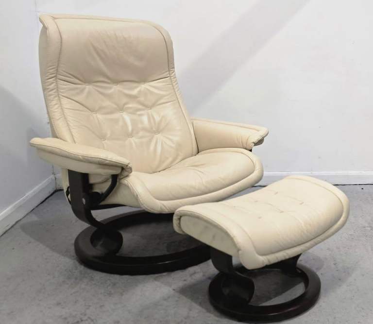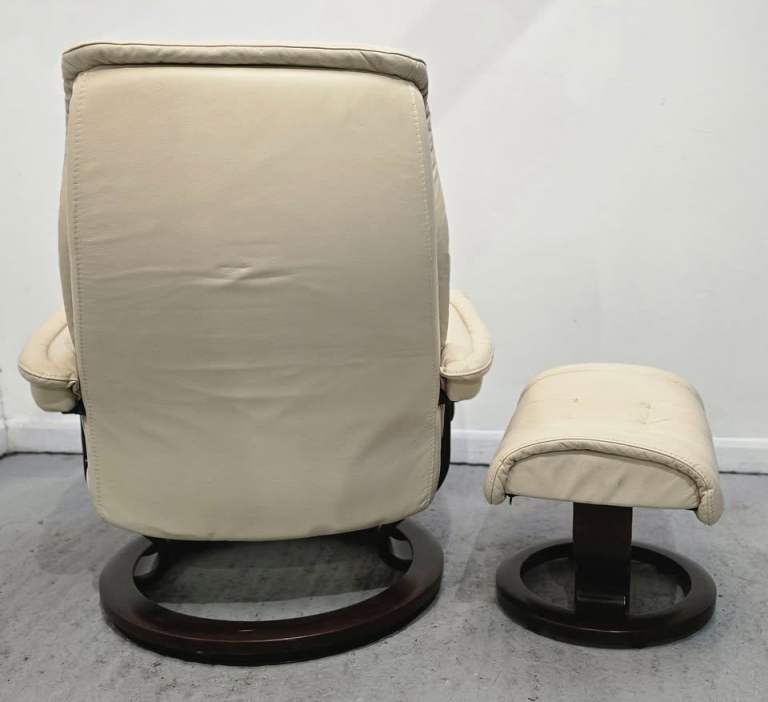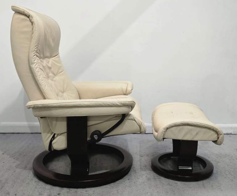 Ekornes Stressless Cream Leather Recliner Swivel Chair and Footstool