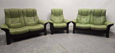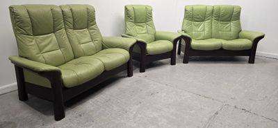 Ekornes Stressless Reclining 2 x 2 Seater Sofas and Recliner Chair in 'Summer Green' RARE!!