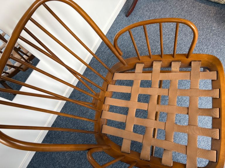 This selection was collected from two different sources and has a slight variance in wood shade. Would benefit from new webbing straps.