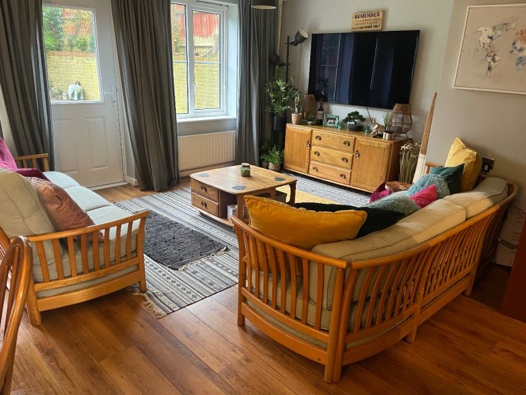 Ercol Rennaissance suite. One low back three seater settee. One high back three seater settee. One armchair. Duck egg blue in colour. Paid £7000. 3 years ago only selling as we are moving house and sadly don’t have room for it in our new flat. I have all these scatter cushions and bolsters to go with the suite but they are stored safe as way as I don’t use them. Good condition. Come from a smoke free home.