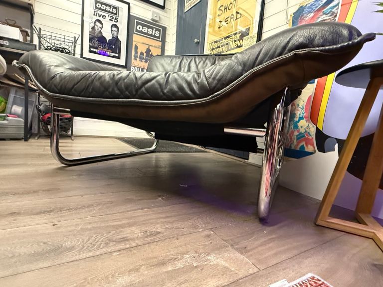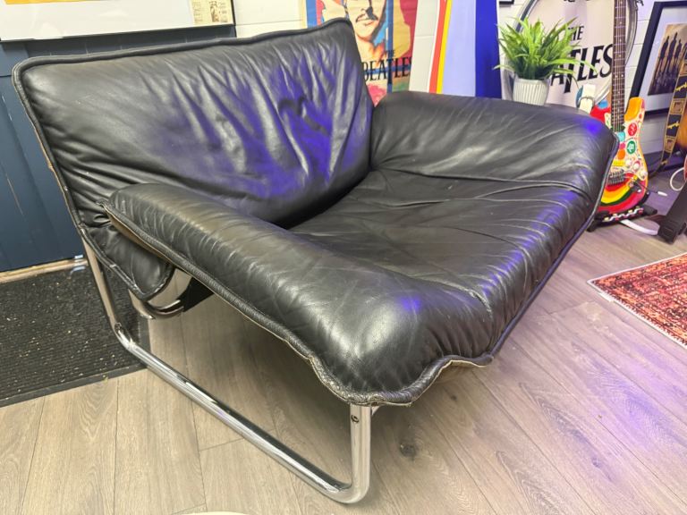 For sale is this Bauhaus black leather lounge chair by Johan Bertil Häggström originally made for Ikea back in the 1980’s. These chairs are extremely rare. The leather is in excellent condition. One bolt needs re threading, parts of the back of the cushions are sun bleached and part of the fabric base has come unstitched at the seem. Still perfectly safe and useable. Collection Peterborough. £1,000