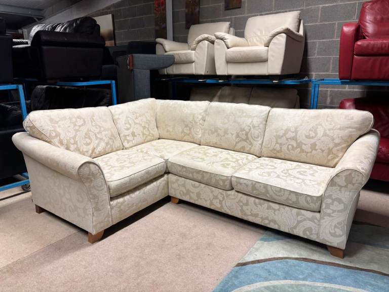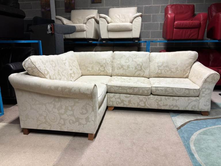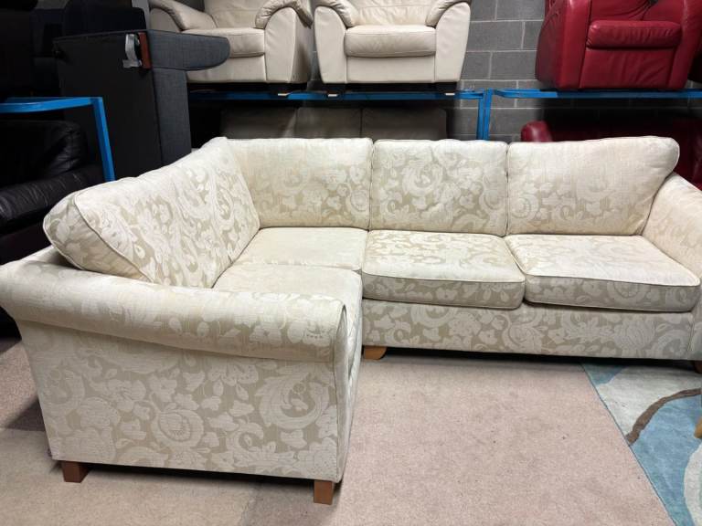 Flowers Pattern Beige Fabric Corner Group Sofa