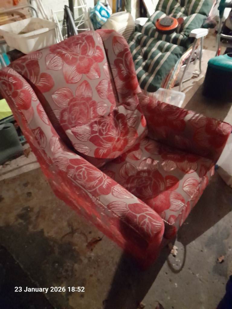 Free armchair in very good condition. The fire label has become detached & lost otherwise we would have donated it to the hospice charity shop. You can see where the label was attached originally.