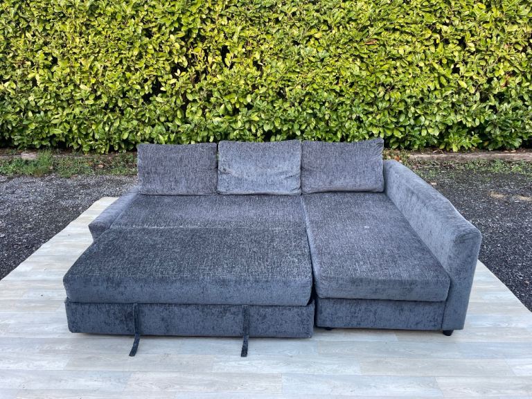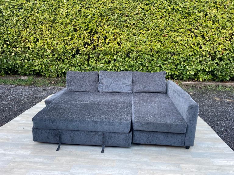 FREE DELIVERY 🥰🚚🥰 IKEA FRIHETEN GREY FABRIC CORNER SOFA BED WITH STORAGE GOOD CONDITION As shown in pictures with some signs of use and a bit deep on armrest, sofa bed, the chaise can be replaced both sides left side and right hand side, sofa comes in 6 parts.