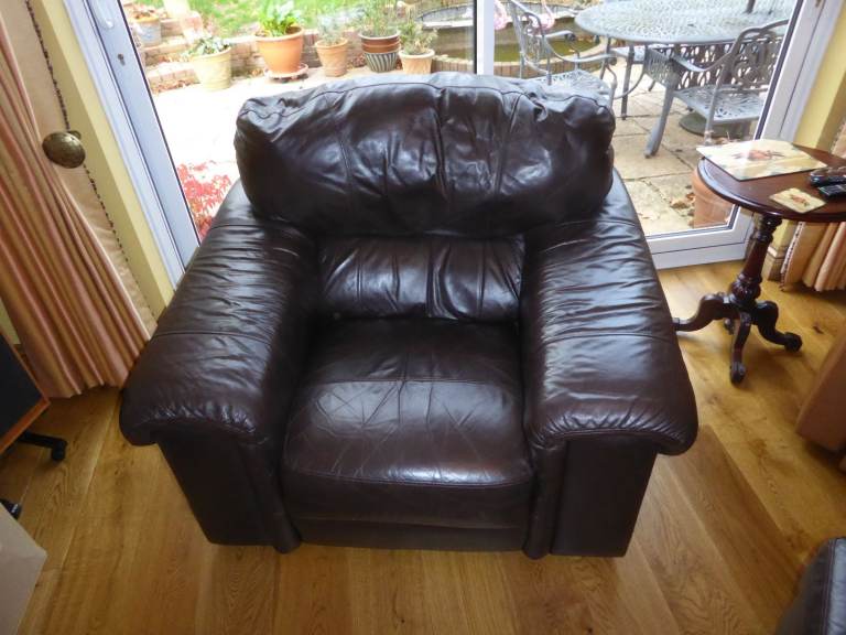 3seater large brown leather sofa