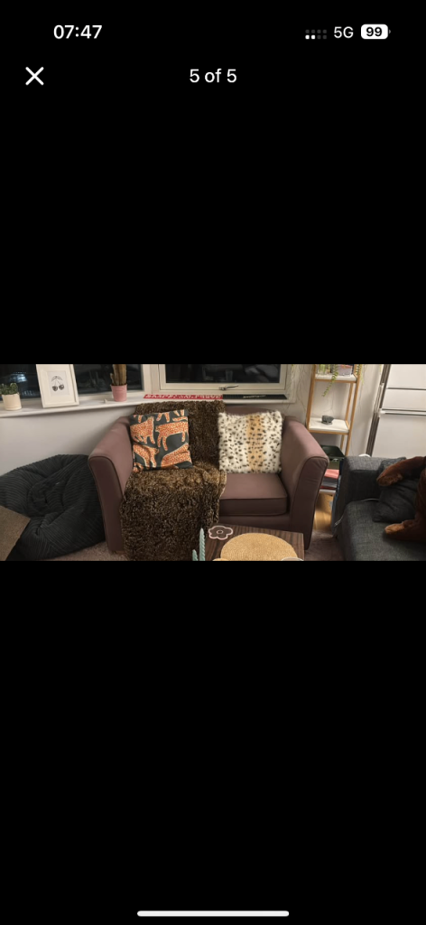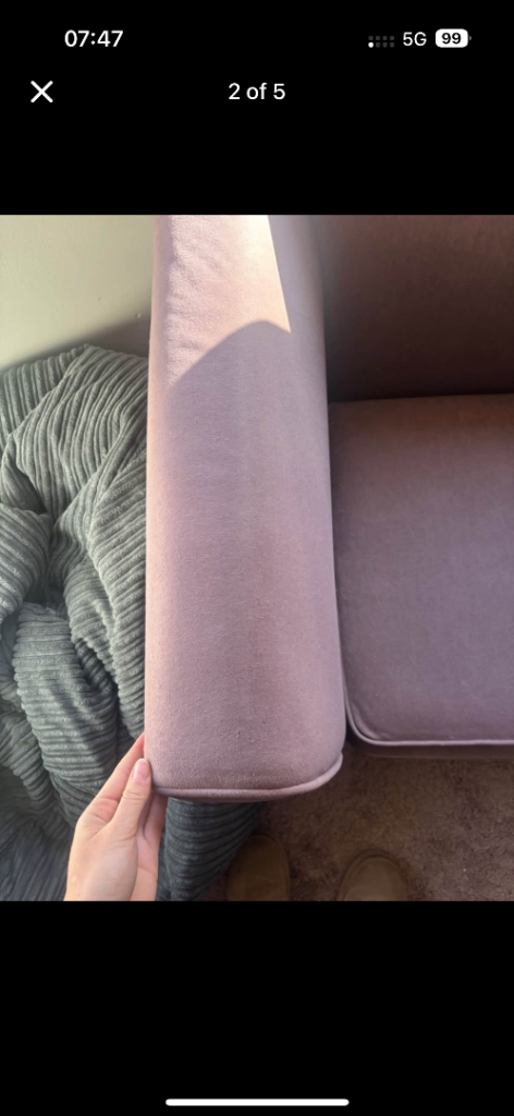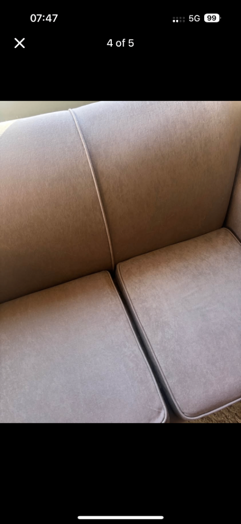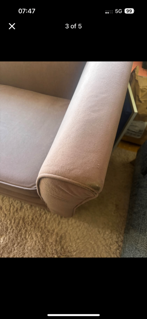 Please see photos, sold as seen. Could likely to do with a clean, but is completely structurally sound and comfy. I put a big fluffy throw over it.