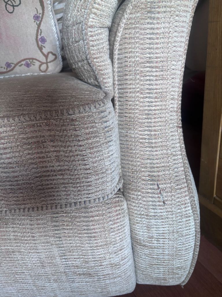 The suite is in very very good condition no sag very comfortable one small defect shown in last picture this item will last many many more years to come