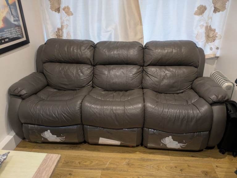 Good condition 3 seater grey leather sofa. Both sides reclinable