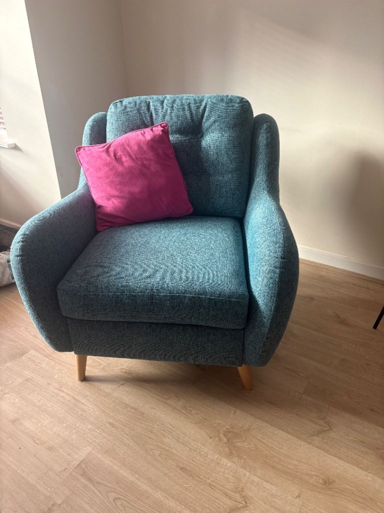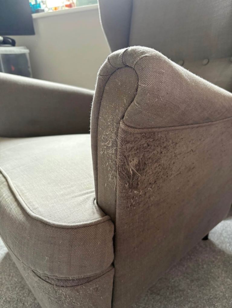 Scratches from the previous owners (cat marks). Can easily be covered with chair cover
