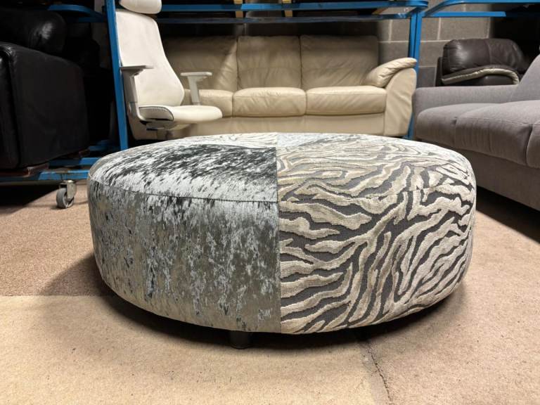 Grey Crushed Velvet Large Footstool excellent condition