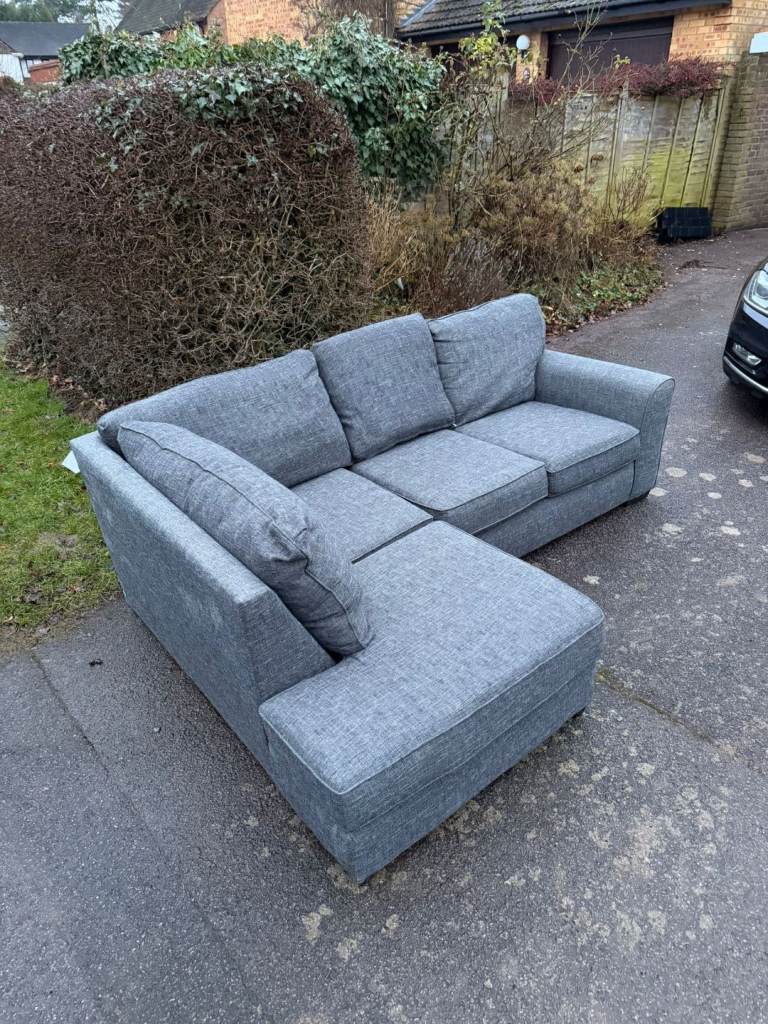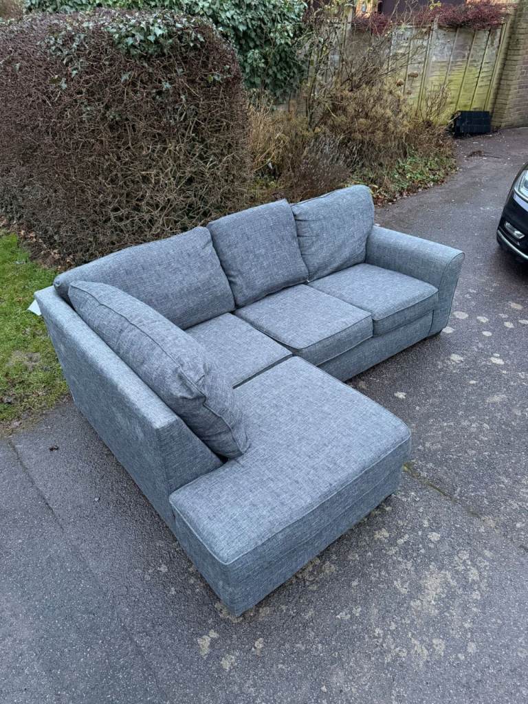 Grey Fabric Corner Sofa with Chaise – Comfortable & Spacious