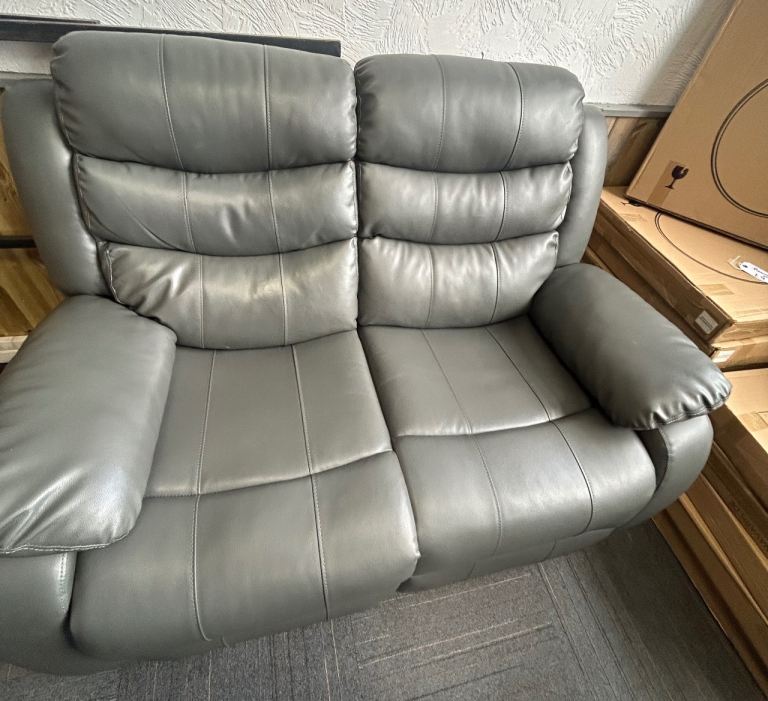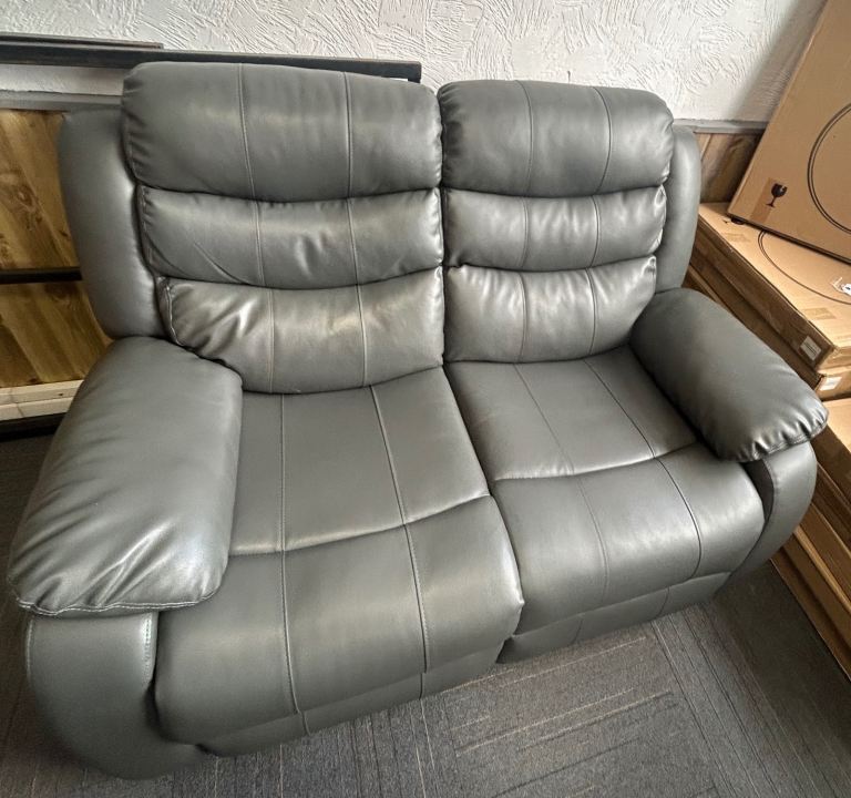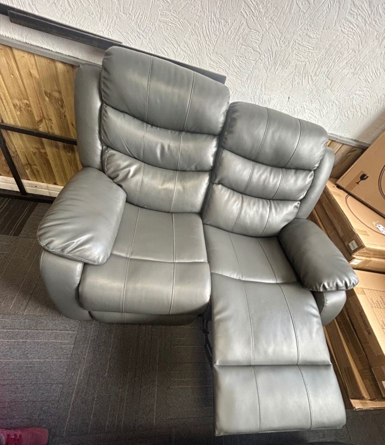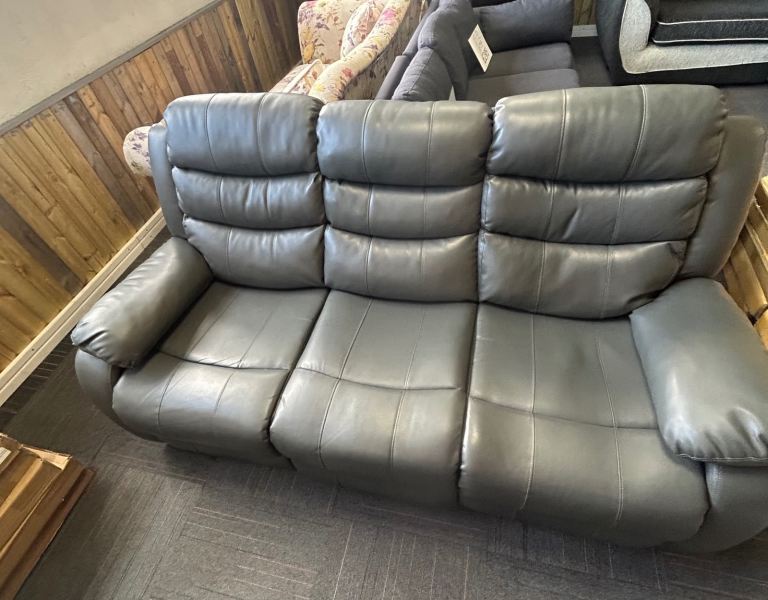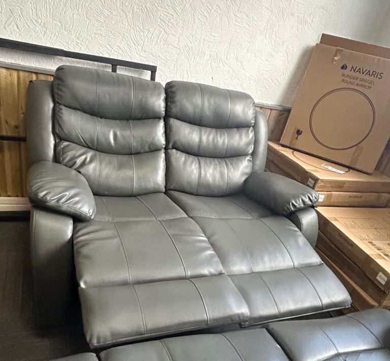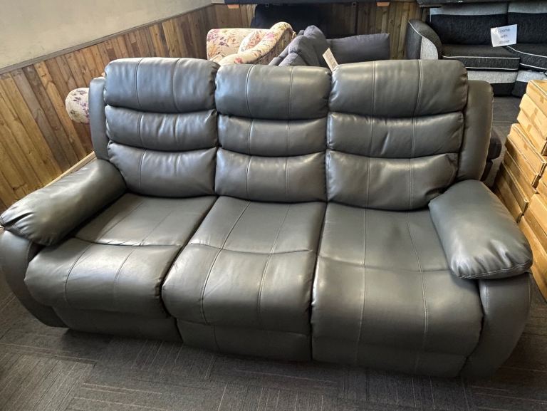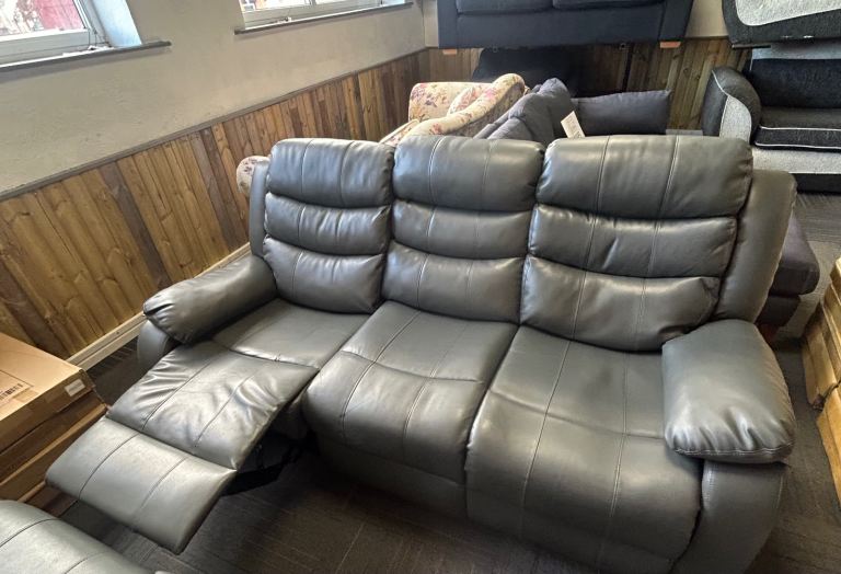 Grey Leather 3 & 2 Seat Manual Recliner Sofas