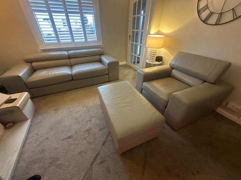 Posting for 1+ monthsGrey leather sofa 3 seater 1 chair and foot stool