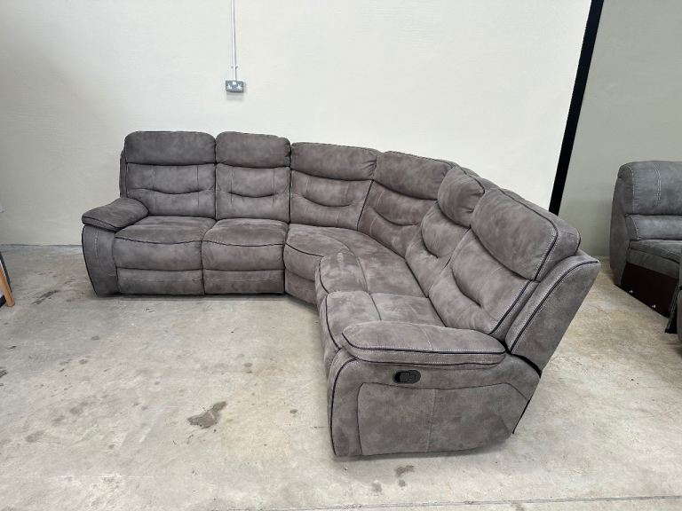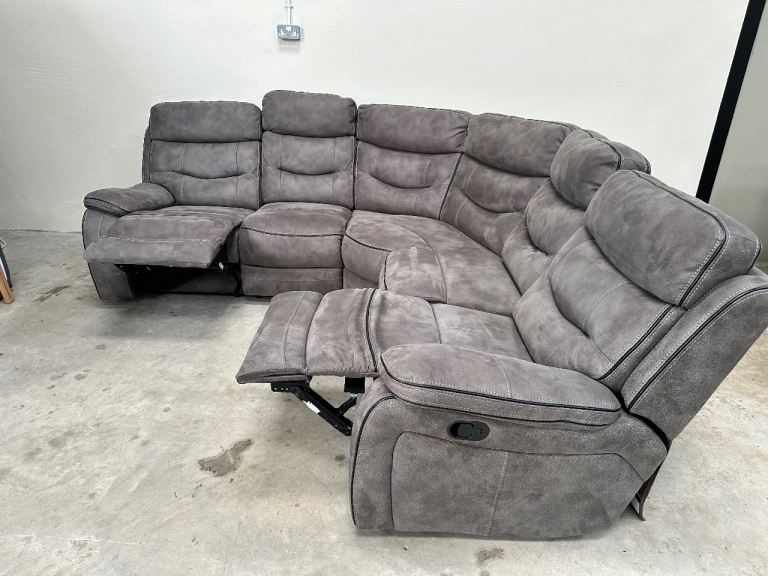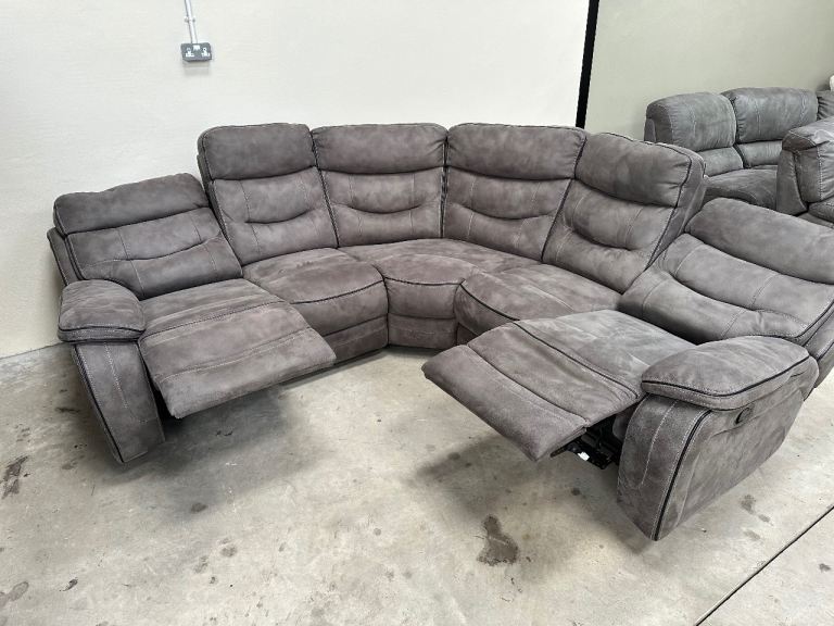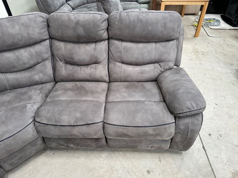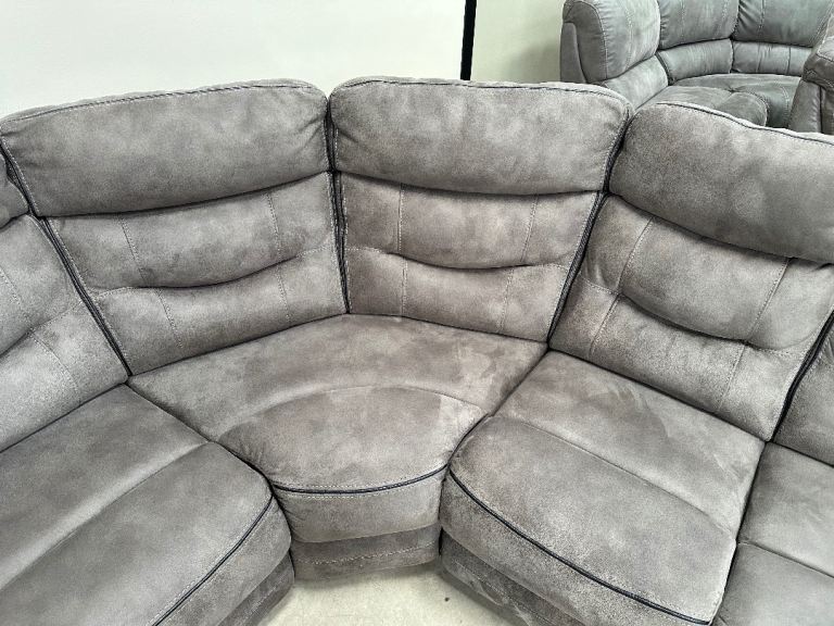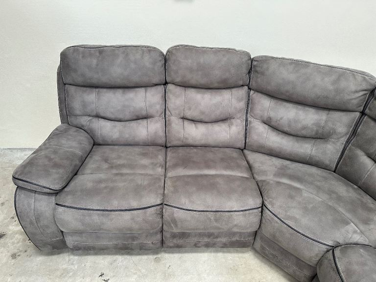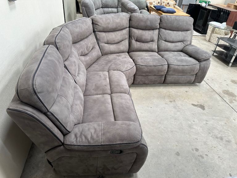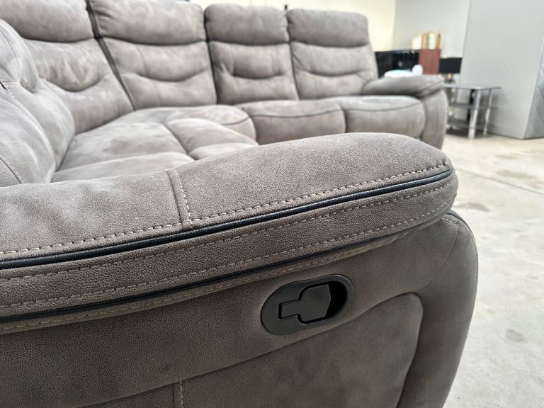 Grey nubuck manual recliner corner sofa