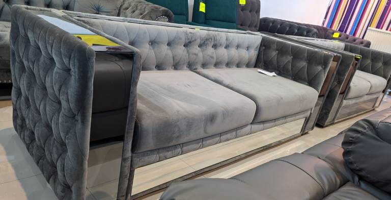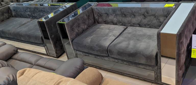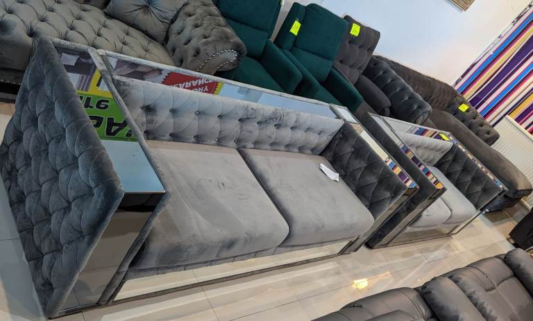 Mirror Grey Velvet Italian Sofa Set ,