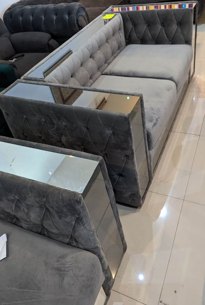 Grey Velvet chesterfield mirror 3+2 Seater sofa Set