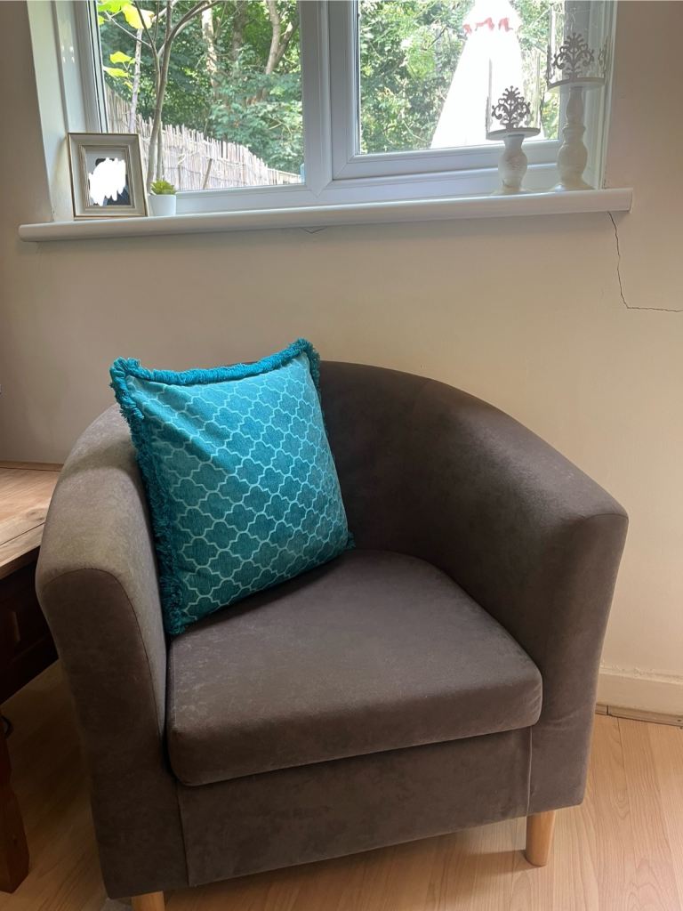 Stunning brown tub chair in absolutely pristine condition.