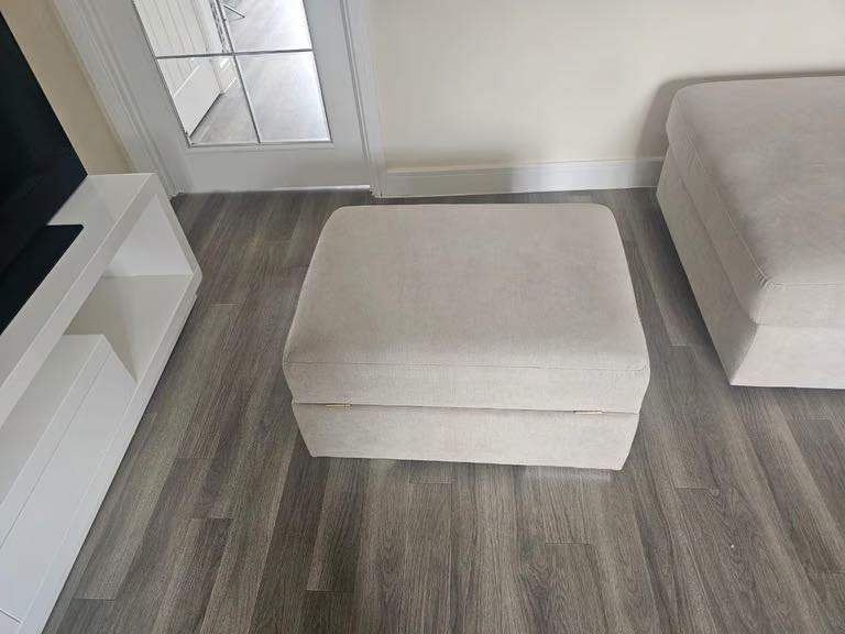 This elegant DFS cream fabric sofa is in absolutely pristine condition, practically as good as new. Having resided in a smoke-free and pet-free home, it's seen very light use in a formal living room. The fabric is unmarked and the cushions are plump and supportive, offering exceptional comfort. Its neutral colour complements a variety of interior styles. We're downsizing, hence the sale. Dimensions are approximately 200cm wide, 90cm deep, and 80cm high. A truly beautiful and comfortable addition to any home.