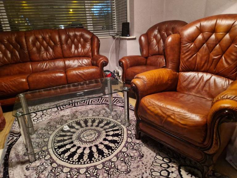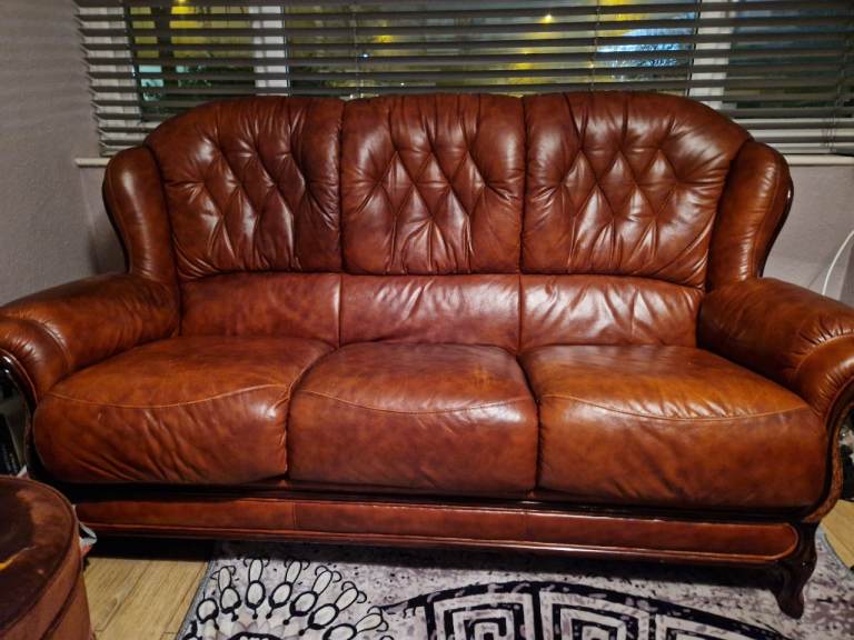 ITALIAN ORIGANAL LEATHER SOFA 2X 1 SEATER PLUS 3