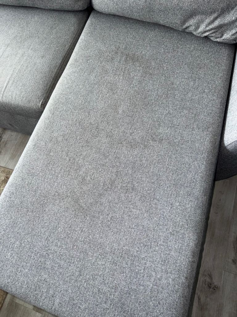 Was purchased in 2020. The two sections detach, allowing you to move the chaise section (with its hidden storage) from one side to the other, and the double section pulls out and converts into a large bed. Please see all dimensions in pictures! Can be dissembled and carried out. Needs a van for transportation. Was originally £1,249 (see screenshot). Has light fake tan staining which can be removed with dry cleaning. Pick up from W3 only!