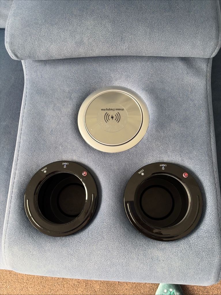 Jude collection power recliner console and chairs large storage foot stall excellent condition as new all powered leg rests and headrests drink coolers phone charger light ,plug sockets ,usb on all items hardly used bought from Furniture village.Buyers to collect