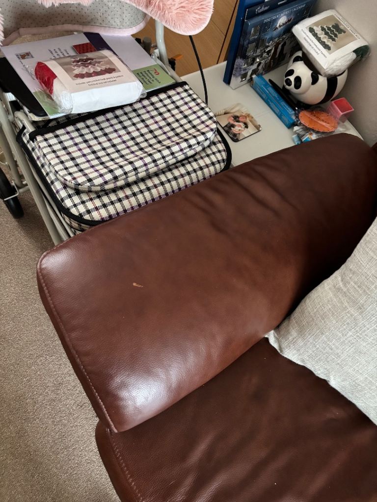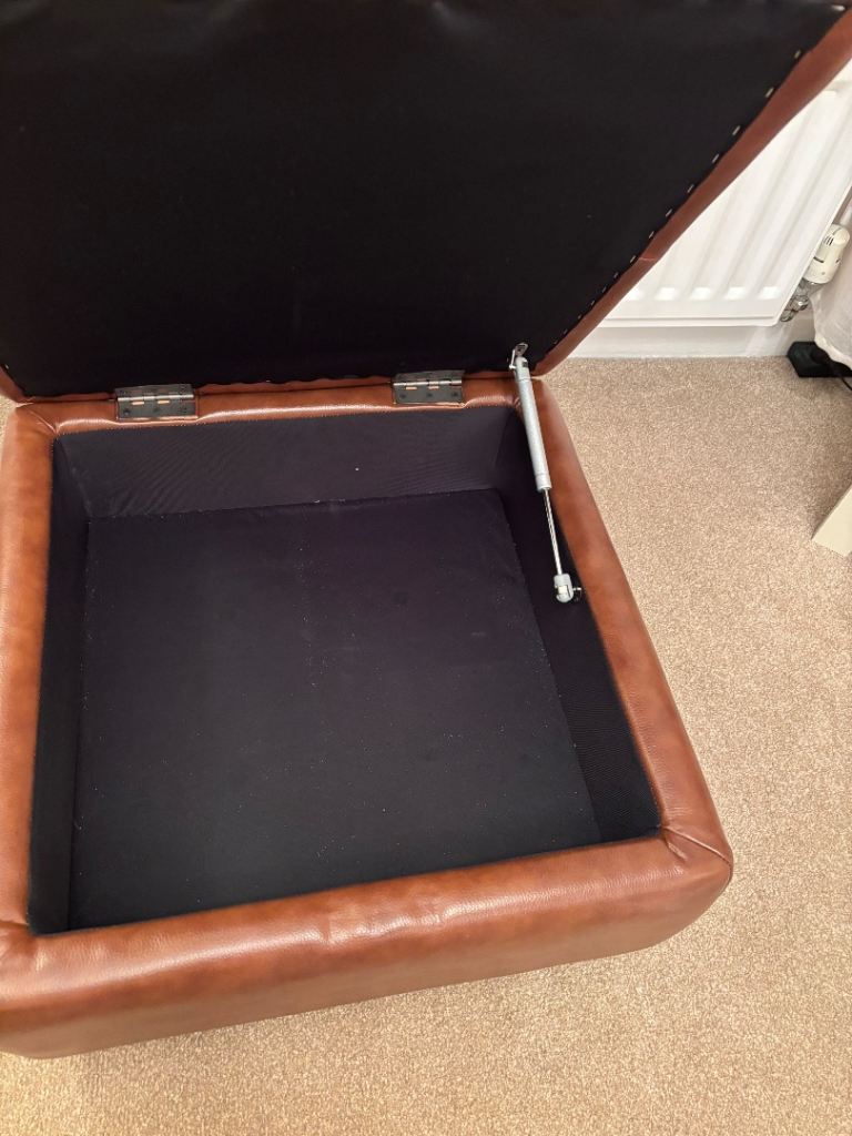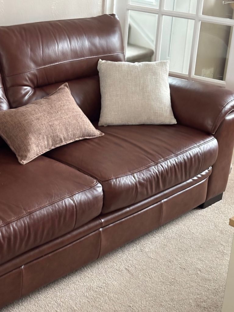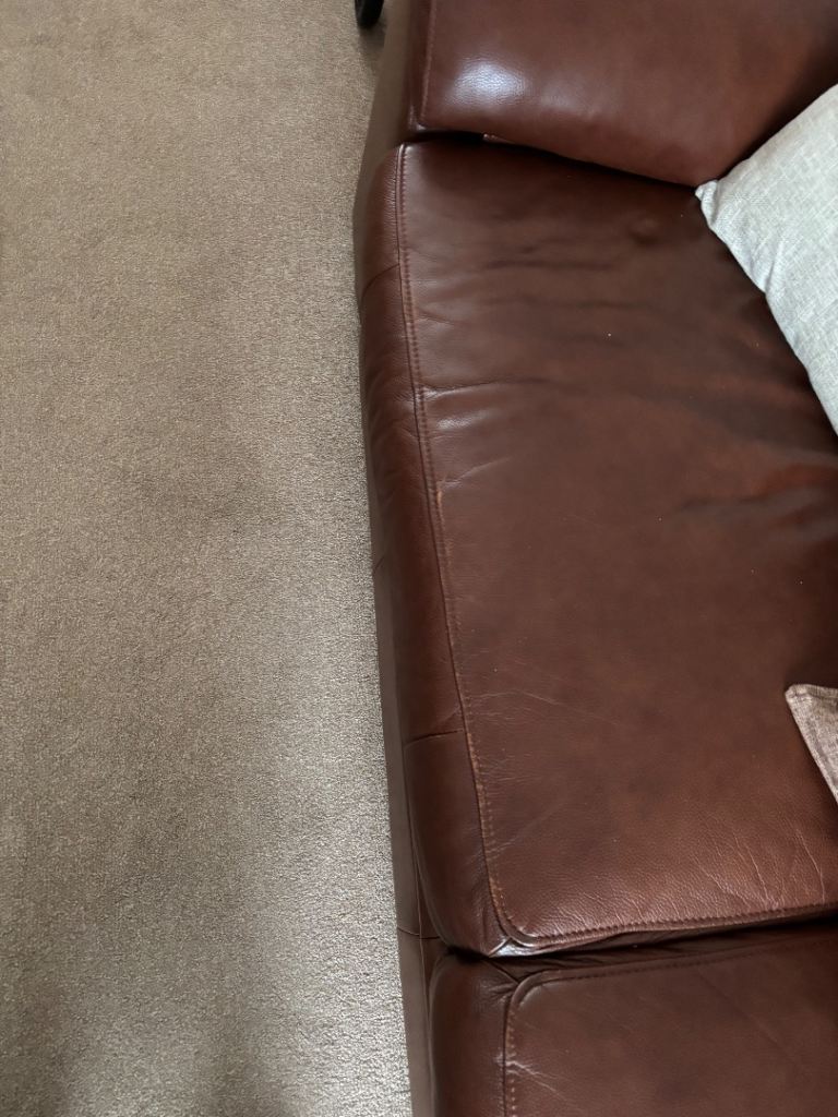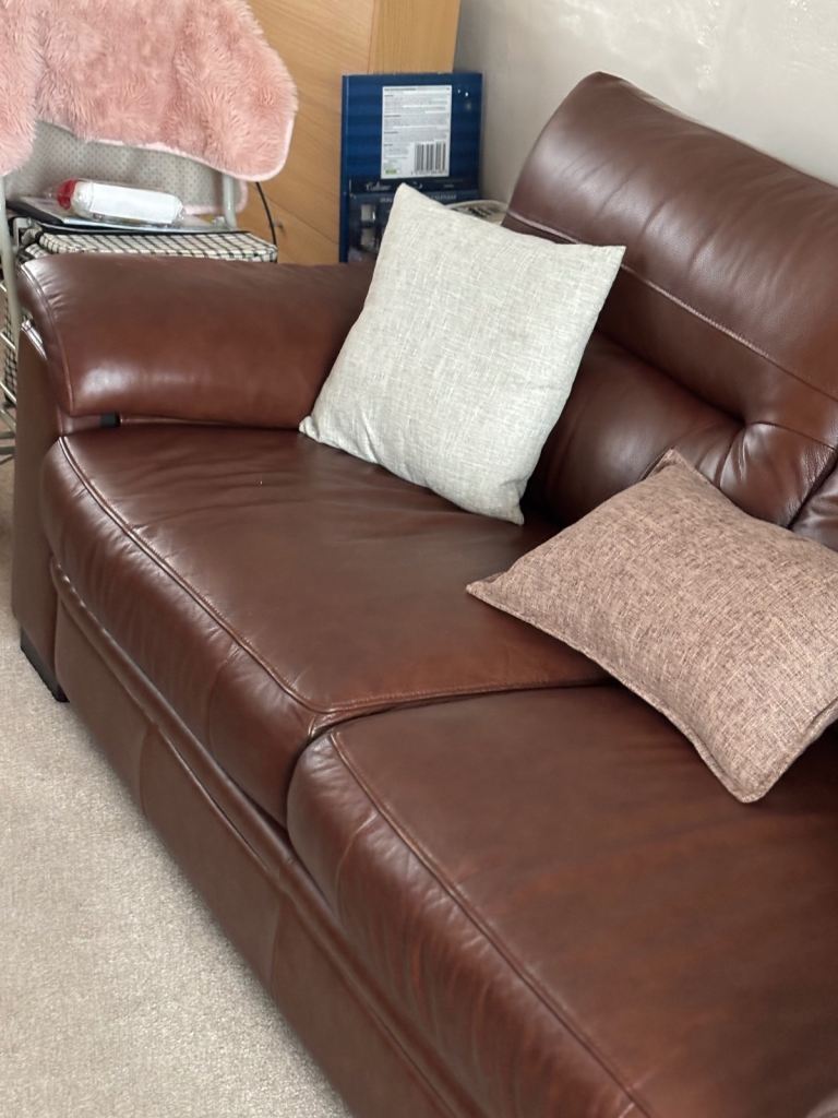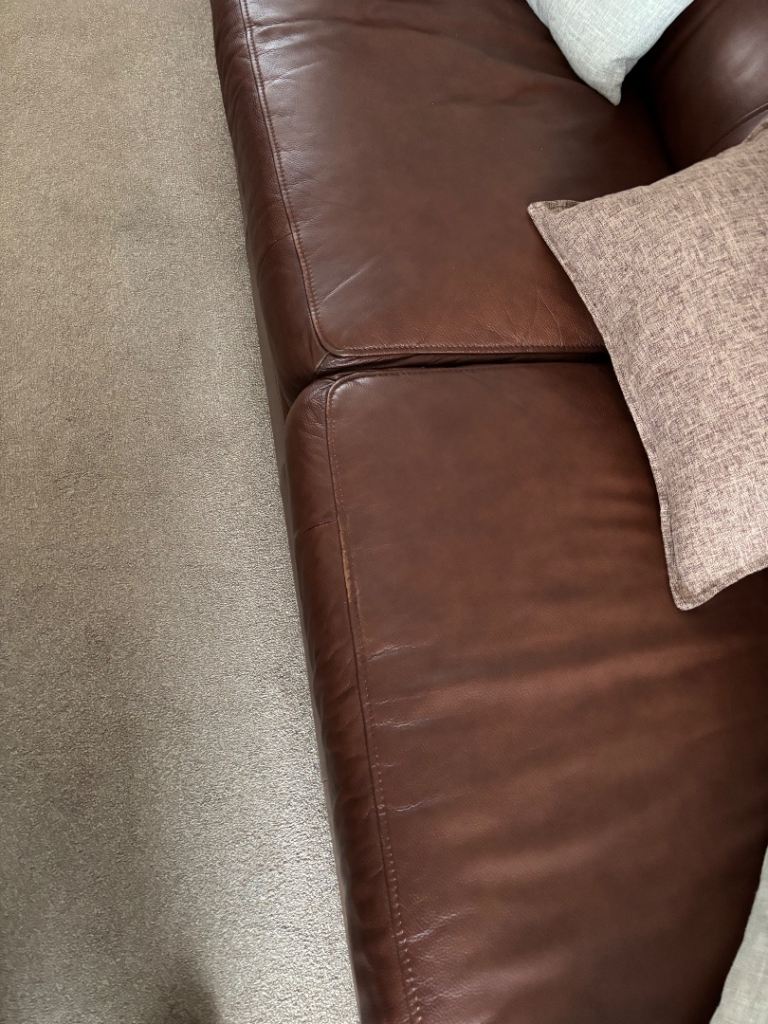 Selling as moving in with daughter. I took out an insurance with this and I think it’s transferable. It’s for 5yrs. It’s 1 1/2 yrs old. The stool was never used it’s brand new. My glass cleaner dripped on suite and lifted the colour but would be covered by policy. It is a comfortable suite. It’s in very good condition otherwise.