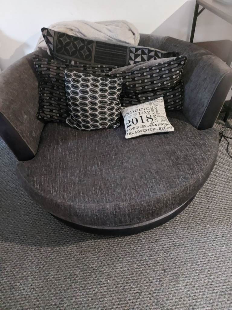 Posting for 9+ yearsLarge DFS Swivel Grey/Black Cuddle Chair