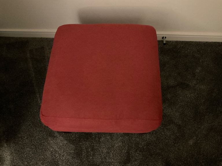 Lovely red large footstool. 15” high, 23” square. Very useful as a footstool, or seat.