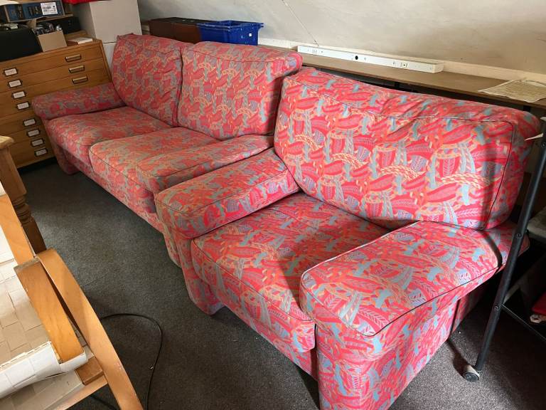 Trendy Retro large sofa and 1 large arm chair, all matching, in good condition for their age. As can be seen in the photo they do have fire labels on them.