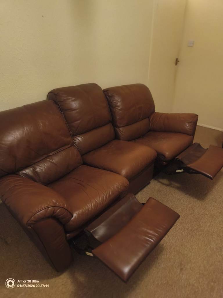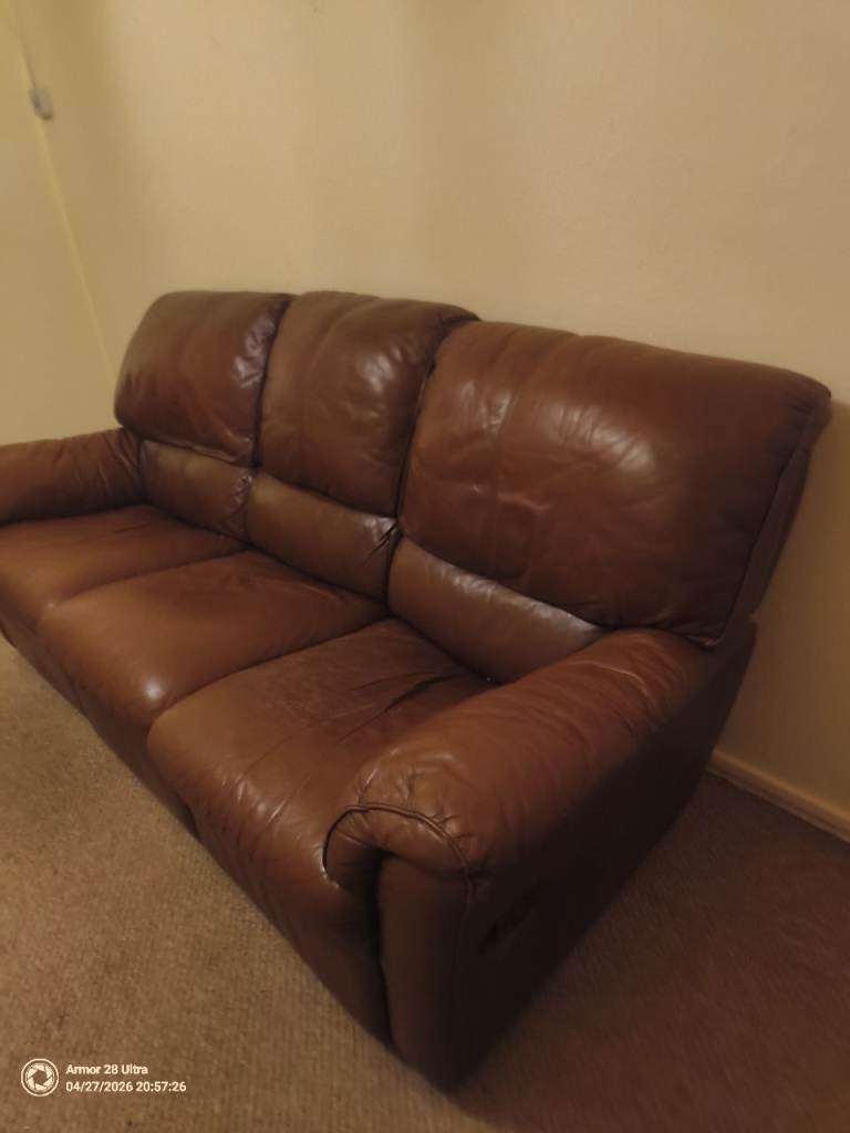 Lazy boy leather sofa 2 and 3 seater brown in Islington
