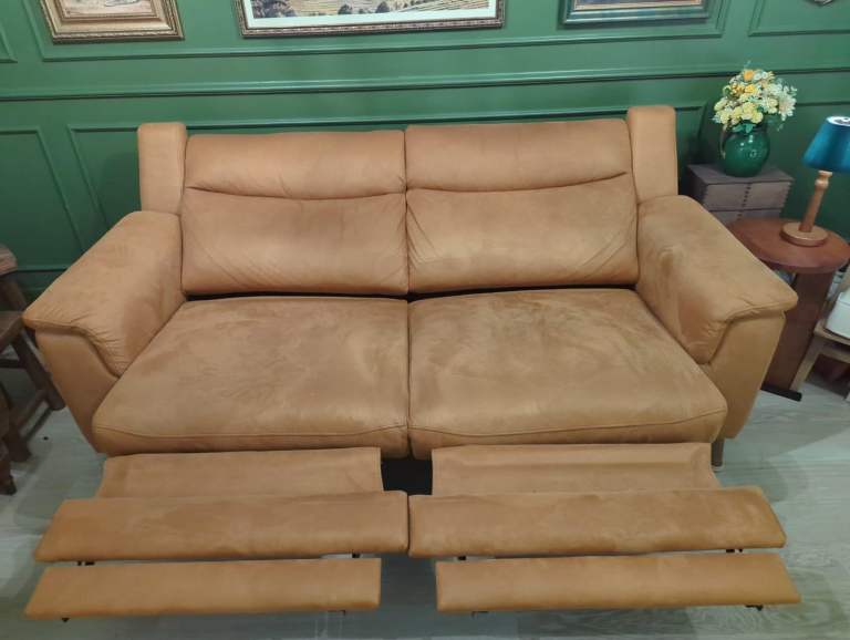 Leather 3 Seater Modern Recliner Sofa – Mustard/Burnt Orange/Yellow Colour – SCS - Living Brodie