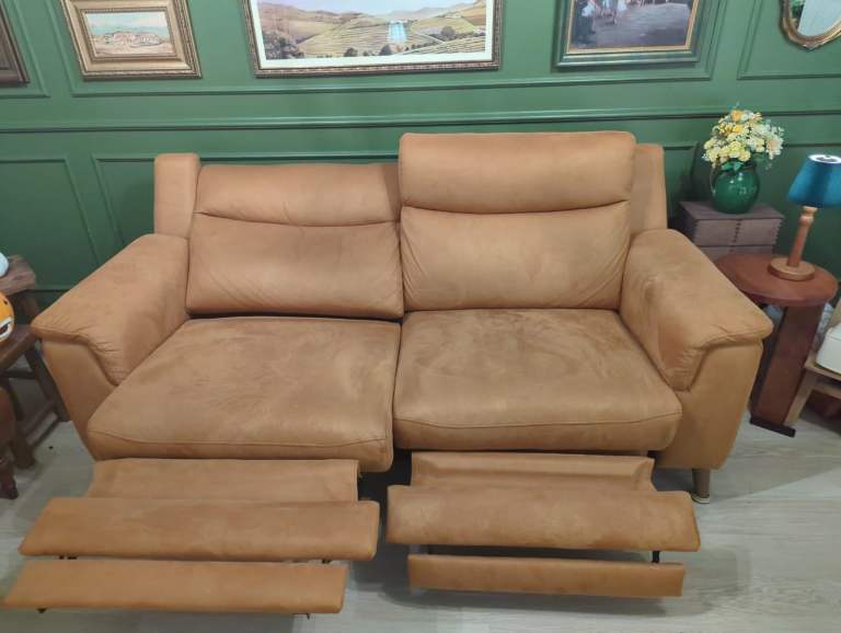 Selling our 2 year old SCS brushed leather 3 seater recliner sofa from the Living Brodie range. Each side can be reclined separately as seen in the pictures. It's in excellent condition from a pet and child free household. No stains, and has been well looked after. Only selling due to it no longer matching our decor. Collection only, I can recommend a Staffordshire courier if that would be helpful! The legs remove for easier transport as well (getting it through doorways and the like).