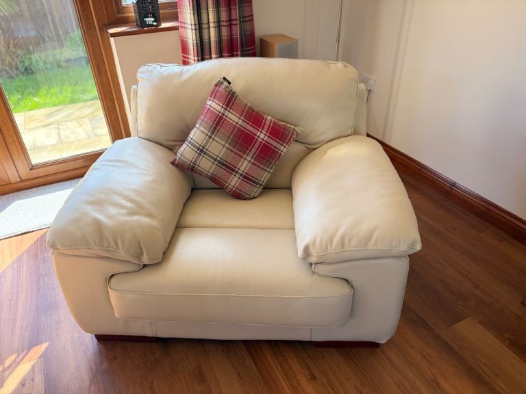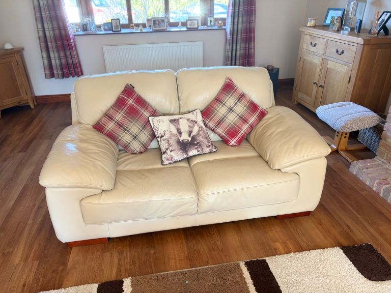 I have for sale this cream leather settee set, which includes the following: