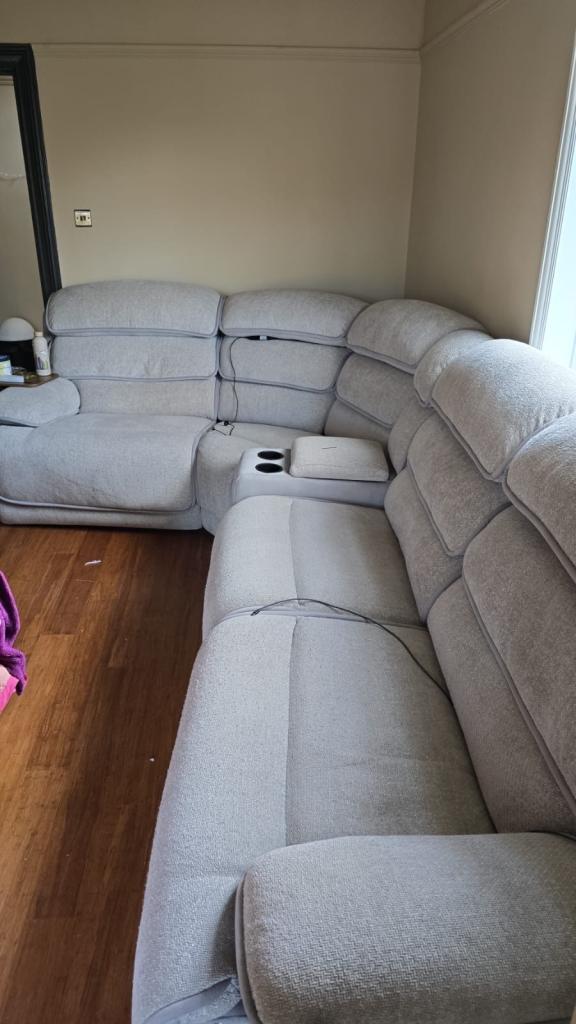 Two leather armchairs with electric foot rests from M&S.