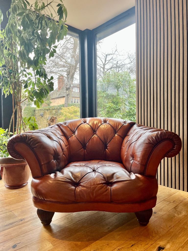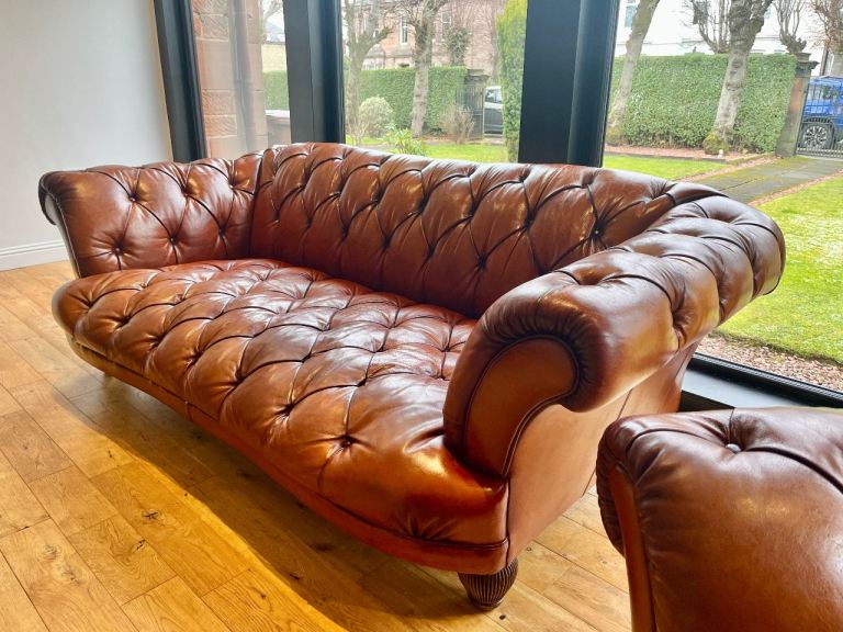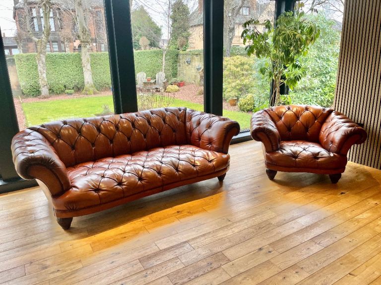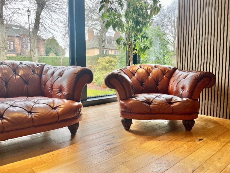 Stunning leather Chesterfield Tetrad Oskar sofa and armchair set. This set is high quality in amazing condition, these would look incredible in any interior. Collection only £1100 for the sofa and armchair set.