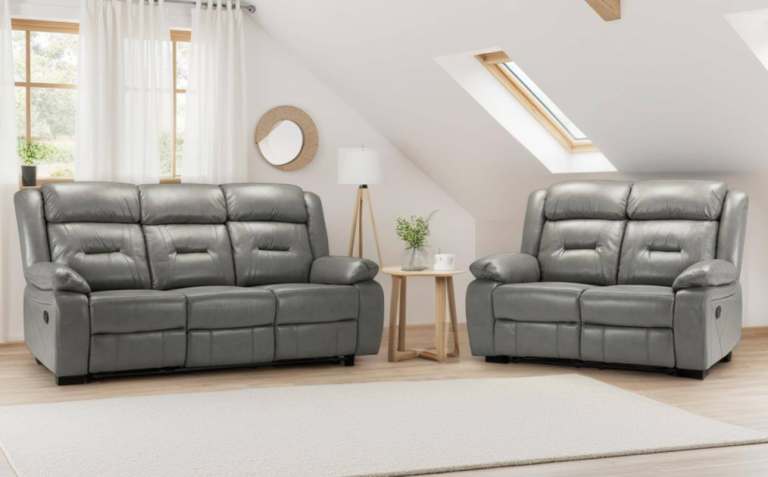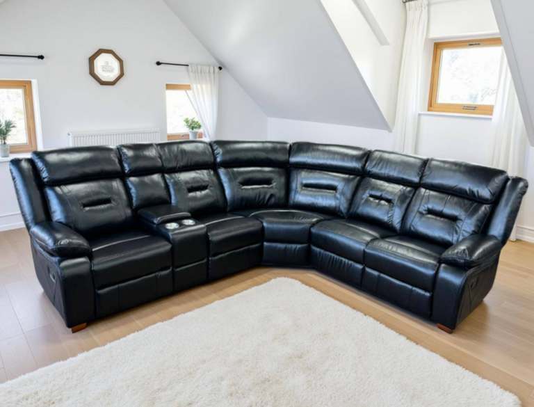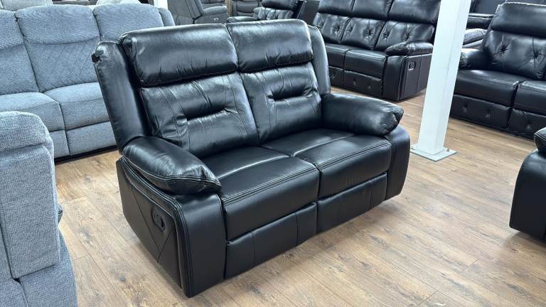 Black or Grey Leather Manual Recliner 3+2 Seater Sofa Set New free local delivery.