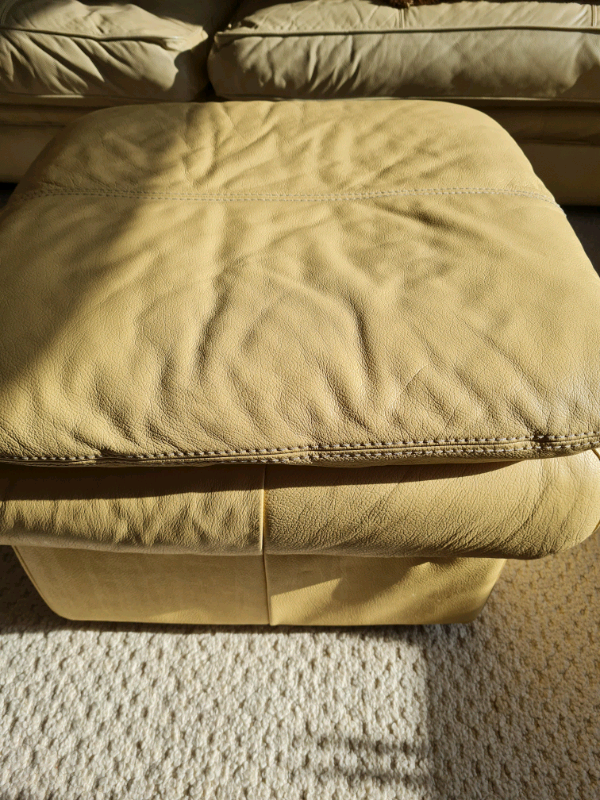 Leather foot stall or small seat to seat on in cream leather size 2ft/2ft wide nice condition no room now in flat for it £25 bargain price