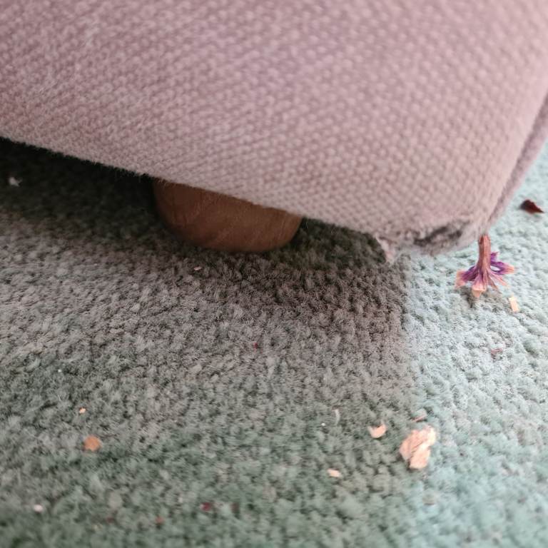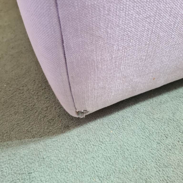 Bought as a second just under 4 years ago. Sold as a second due to the damage to all 4 corners. It has marks here and there with the two main ones hidden by the seat cushion. Please see photos. It has moved house twice which is partly why it's not pristine.