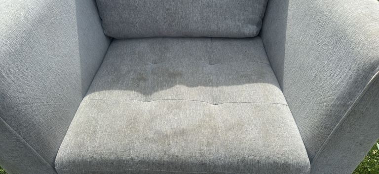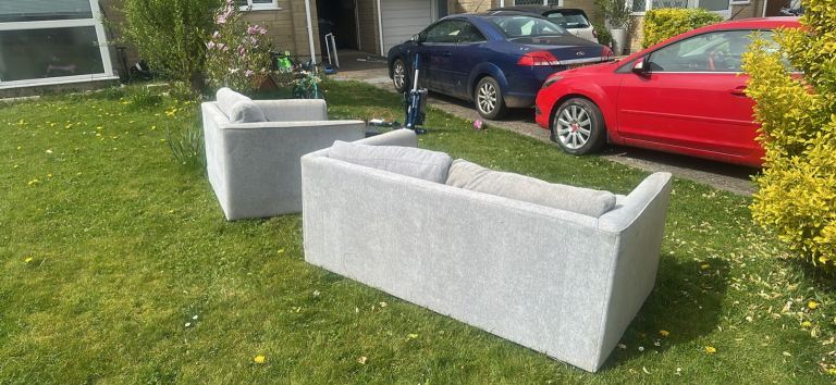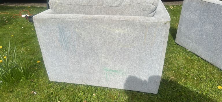 Six year old sofa ready now for collection. Good quality but cushions either need to be deep cleaned or covered.