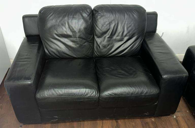 Luxurious Italian Black Leather 3 + 2 Seater Sofas FREE DELIVERY NOTTINGHAM