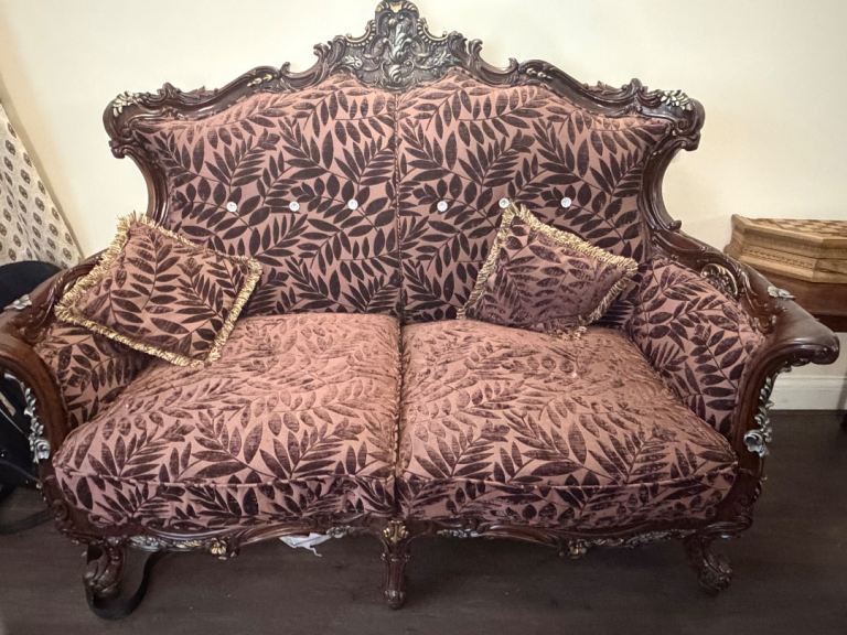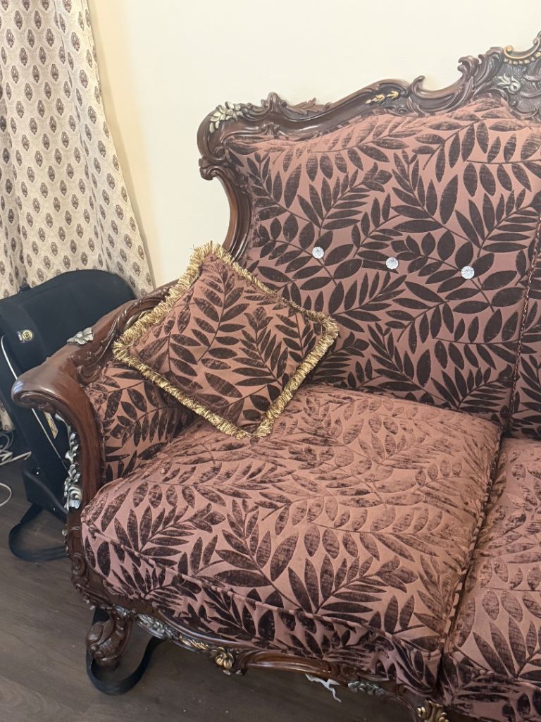 Posting for 4+ yearsLuxury Antique Style Carved Wooden Sofa Set – 4 Pieces (3 Seater, 2 Seater, Armchair & Bench)