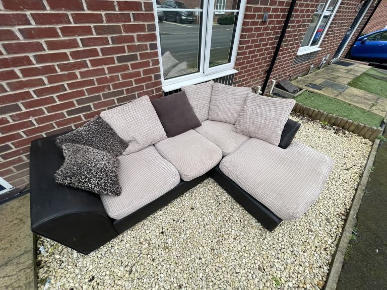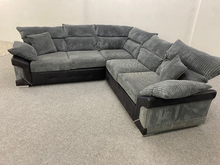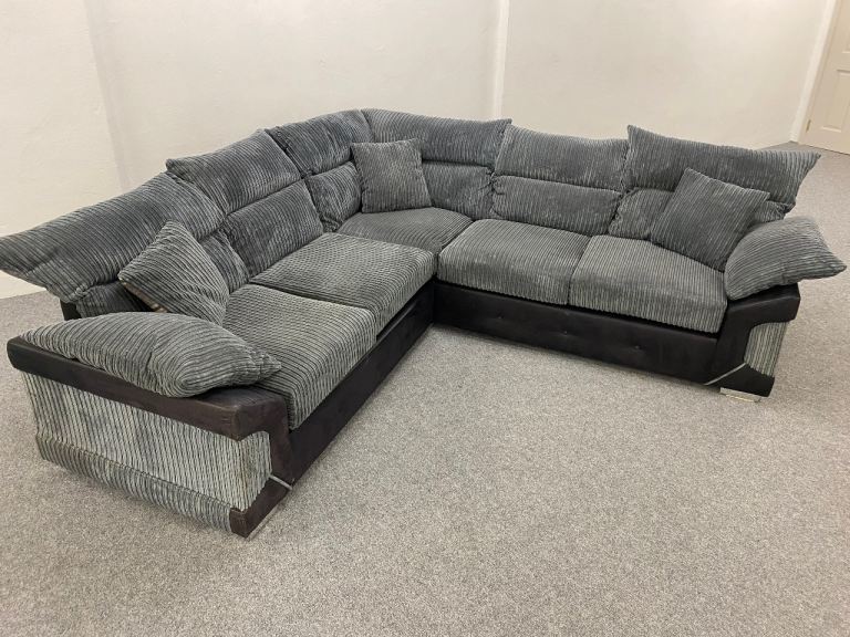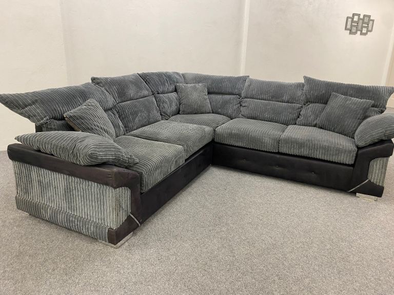 Luxury grey cord fabric corner sofa suite